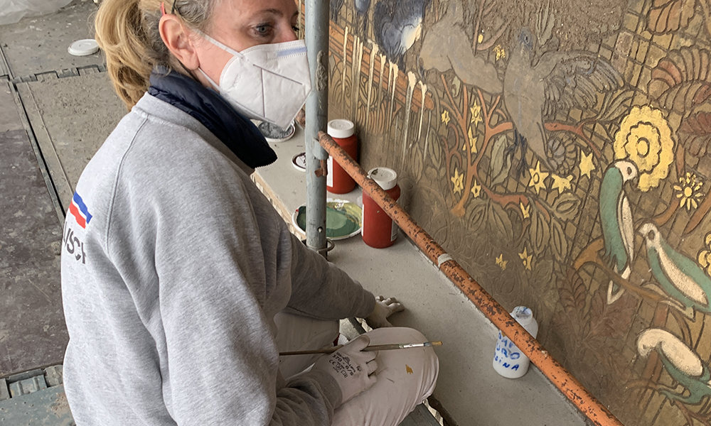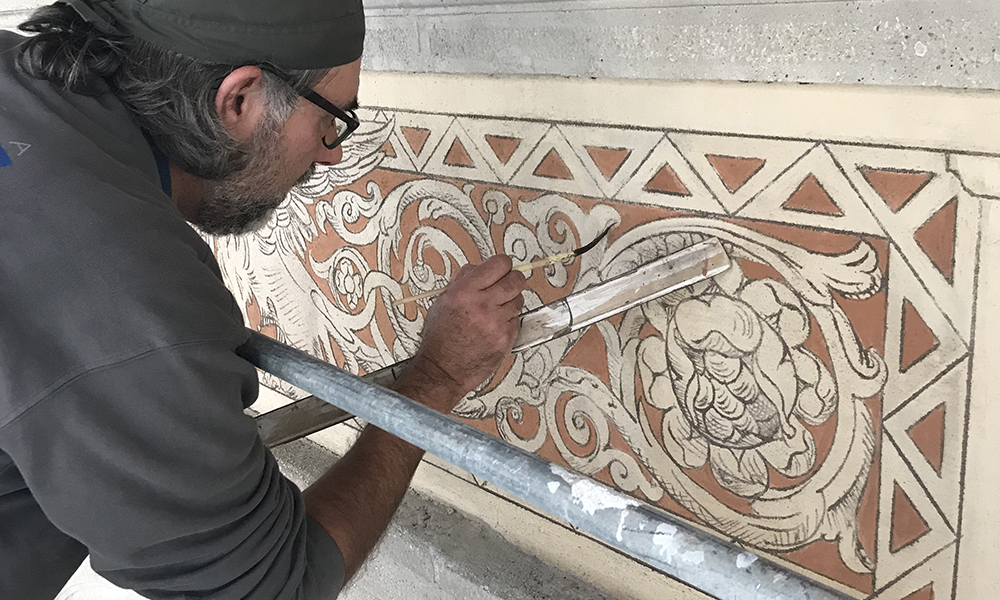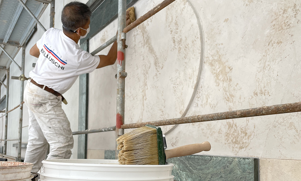 Restauro di affreschi, decorazioni murali quali il graffito, finti marmi ed altre tecniche;
